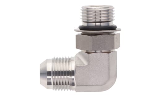 90° Elbow, 1" JIC (1 5/16"-12 thread) x 1 1/2" ORB (1 7/8"-12 thread) Male hydraulic fittings