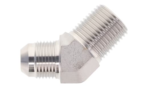 3/8" 37° JIC (9/16"-18 thread) x 1/4" Male Pipe 45° - Stainless Steel