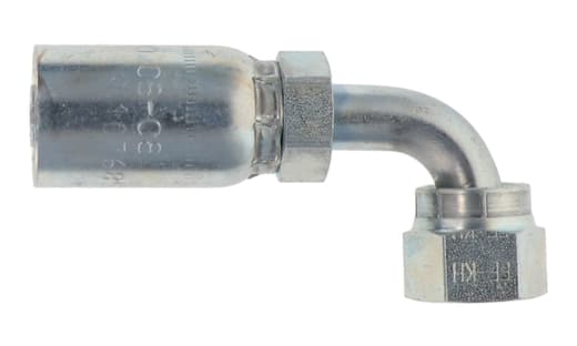THY-FFX90-06-08 | 3/8" Hose x 1/2" ORFS Female Swivel 90° crimp fitting | Quantity | List price $25.75 | Your price | Total $25.75 | |