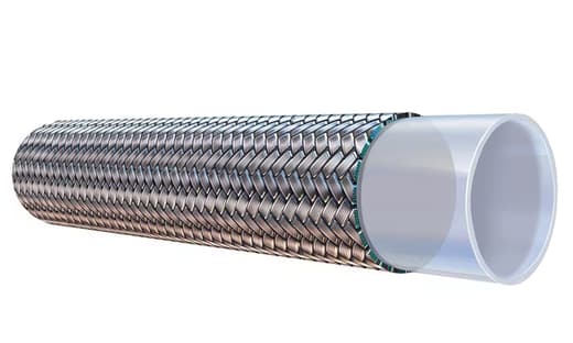 The Stainless Steel PTFE Hose merges a white extruded PTFE inner core with a stainless-steel braid outer cover, assuring superior chemical resistance and thermal stability from -65°F to 450°F. Ideally suited for the chemical, pharmaceutical, and food processing industries where hoses encounter high temperatures and corrosive substances.