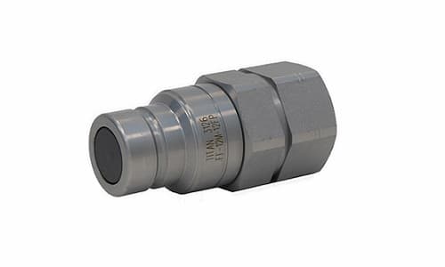These ISO 16028 Flushface Quick Couplers, made from high-pressure carbon steel with zinc trivalent coating, feature a unique flush face design to minimize fluid loss and contamination. Versatile for various applications, they support both NPT and SAE ORB threads. Their quick connect/disconnect mechanism and operational range from -25°C to +125°C make them reliable and efficient for demanding hydraulic systems.