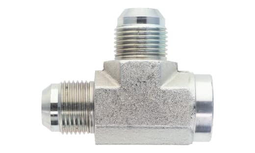 2606-04-04-04 Run Tee 1/4" Male JIC (7/16"-20 thread) (7/16-20 thread) x 1/4" NPTF Female x 1/4" Male JIC (7/16"-20 thread)